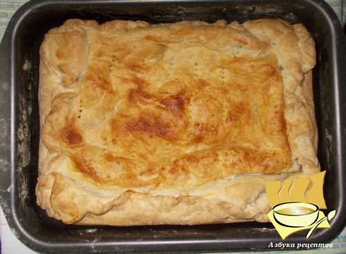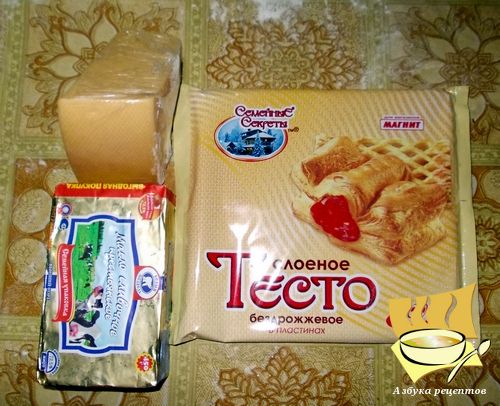 Ингредиенты: слоеное тесто - 500 г, сыр - 500 г, сливочное масло (много), черный перец, соль по вкусу.