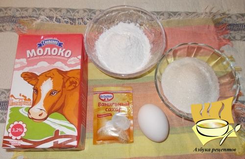 Ингредиенты: молоко - 2 стакана, 2,5 ст. л. крахмала (можно кукурузного), 1 яйцо, 2 ст.л.сахара, четверть ч.л. ванильного сахара или порошкового ванилина.
