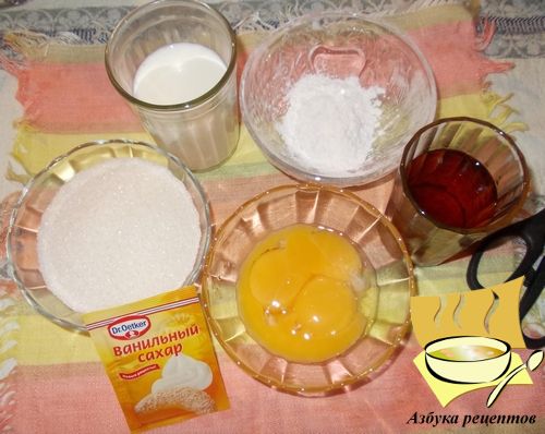 Ингредиенты: коньяк – 300 мл (можно заменить водкой), холодное молоко – 750 мл, яичные желтки – 12 шт, сахар – 800 г, крахмал – 50 г, ванилин - 1 пакетик.