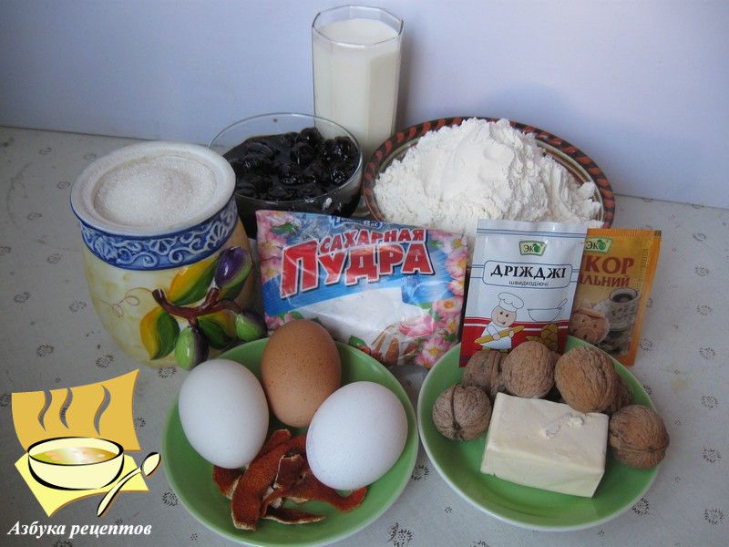 Ингредиенты: молоко - 350 мл, желток яйчный сырой - 3 шт, сахар - 4 ст. ложки, масло сливочное - 50 г, пшеничная мука – сколько «возьмет» тесто, клубничное варенье, несколько грецких орехов, дрожжи сухие - 11 г, ванильный сахар, высушенная апельсиновая кожура или цукаты.