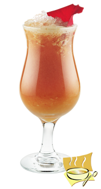Ингредиенты: золотой ром - 35 мл, самбука светлая - 15 мл, яичный ликер - 15 мл, ананасовый сок - 35 мл, апельсиновый сок - 35 мл, лепестки красной розы - 1 шт, джем вишневый - 20 г, лед дробленый - 250 г, лед в кубиках - 200 г.