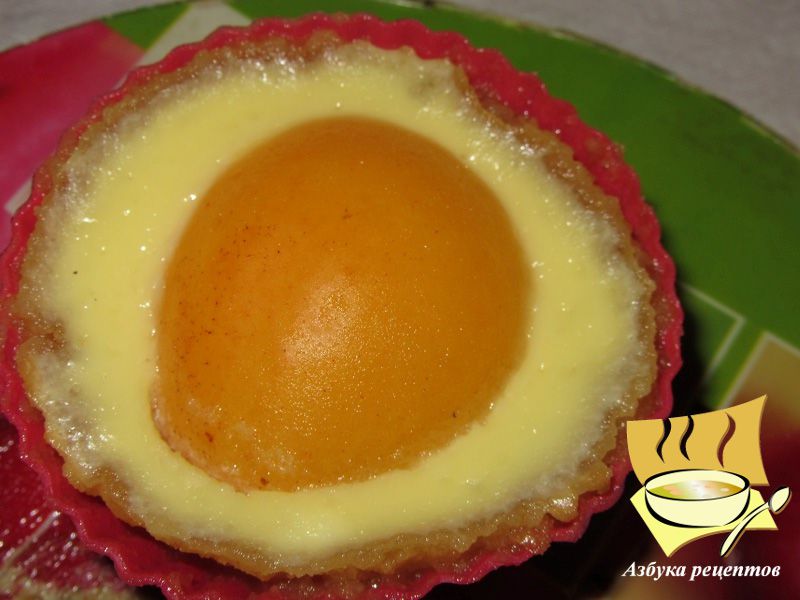 Самое важное, что можно сказать про этот рецепт сладкой глазуньи, так это то, что он прост в приготовлении. Обычные ингредиенты и легкий способ получения теста для корзиночек не оставят равнодушными как начинающих, так и заядлых кулинарок. Абрикосы для пирожного можно использовать как свежие, так и консервированные. Я не пробовала, но подозреваю что и сам абрикос можно заменить на любой фрукт желтого цвета. Главное, чтобы фрукт не был слишком сладок, иначе он не будет сочетаться со сметанной начинкой. Если у вас нет формочек, то можно испечь сладкую яичницу в обычной круглой жаровне, чтобы создать ощущение настоящей глазуньи расположите абрикосы не в строгом, а в хаотичном порядке. Возможно, резать такой пирог будет чуть сложнее, зато выглядеть он будет как настоящая яичница.