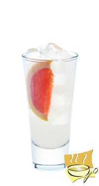 Ингредиенты: водка - 40 г, биттер лемон - 155 г, лед в кубиках - 230 г, кусочек грейпфрута - 35 г, медовый сироп - 15 г.