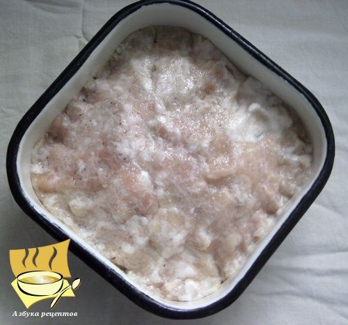 Которую кладем на пельменницу. В отверстия пельменницы закладываем фарш.