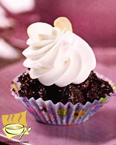 Переложить в кондитерский мешок с широкой рифленой насадкой и украсить сверху печенье. Поставить в холодильник на 1-2 ч. Перед подачей можно украсить коктейльными вишенками или ломтиками фруктов.