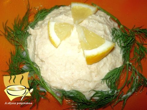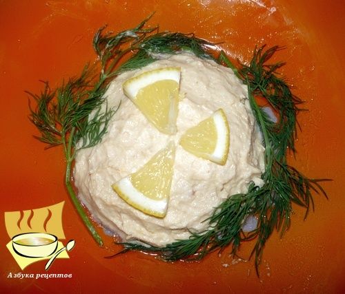 Подавать и украшать форшмак принято по-разному. Можно выложить его в салатник в форме рыбы, украсить тертым желтком, колечками лука, дольками лимона, зеленью. Также можно подать эту закуску на тостах.