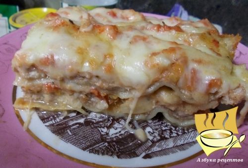 Лазанью я начала готовить после просмотра детского фильма "Гарфилд", рыжий кот в этом фильм с таким аппетитом ее ел. Готовлю много вариантов, этот один из них. Особенностью данного варианта является использование фарша. Сыр в оригинале используется моцарелла, риккота и пармезан, но я когда не могу их купить, заменяю другими доступными сырами. Фарш я использую куриный, поэтому не обжариваю, если у Вас другой фарш его лучше предварительно обжарить.