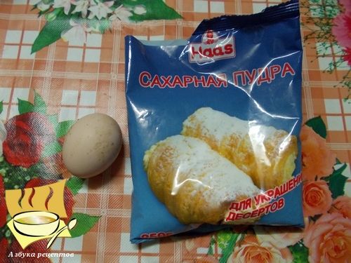 Ингредиенты: белок - 1 шт, сахарная пудра - 3 ст. ложки.