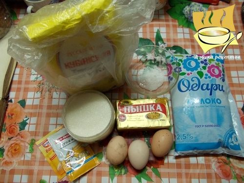 Ингредиенты: мука - 1 кг; яйца - 6 шт; молоко - 300 мл; маргарин или сливочное масло - 300 г; сахар - 1-2 стакана; дрожжи - 1 пакетик или 25-50 г обычных, соль - 3/4 ч. ложки, ванильный сахар - 14 г.