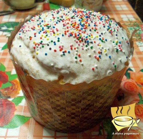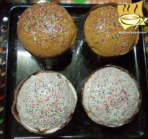Намазываем куличи глазурью, посыпаем посыпкой. Куличи готовы.