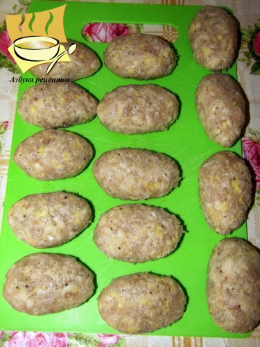 Затем, немного смачиваем руки водой и формируем небольшие котлеты.