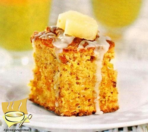 Ингредиенты: мука - 200 г , сода - 1 ч. л, сахар - 175 г, оливковое масло - 150 мл, яйцо - 2 шт, морковь - 175 г, очищенные грецкие орехи - 75 г, консервированные кусочки ананаса - 75 г. Для глазури: сливочный сыр - 200 г, сахарная пудра - 75 г, сок 0,5 апельсина.