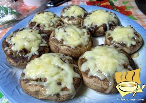 Простая в приготовлении и вкусная закуска, или даже гарнир по Вашему желанию. Начинка может быть любой, размер грибов тоже. У меня обычно так, большие - гарнир, а маленькие - уже закуска.