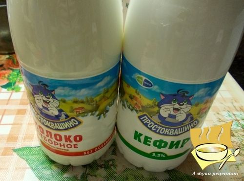 Ингредиенты: молоко коровье цельное - 1 л, кефир на натуральной закваске - 0,3-0,5 л.