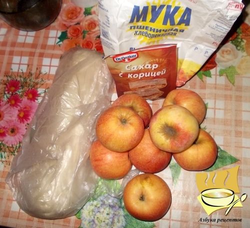 Как приготовить пирог с яблоками из слоеного теста: Тесто размораживаем, если требуется.