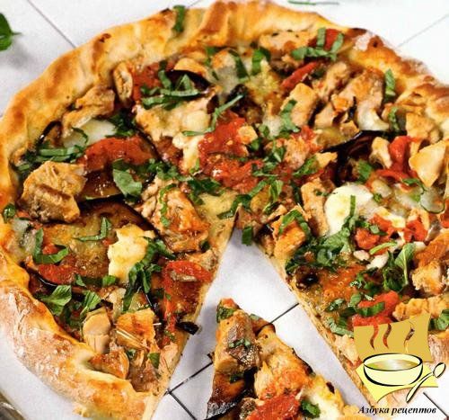 Ингредиенты: мука - 1 стакан, соль - 1/4 ч. л, сухие дрожжи - 1 ч. л, теплая вода - 1/3 стакана, молоко - 1/4 стакана, оливковое масло - 1 ст. л. Для соуса: томатный соус - 2 ст. л, оливковое масло - 2 ст. л, сухой орегано - 1 ч. л, сыр моцарелла - 120 г. Для начинки: средний баклажан - 1 шт, консервированный лосось - 250 г, тертый пармезан - 40 г.