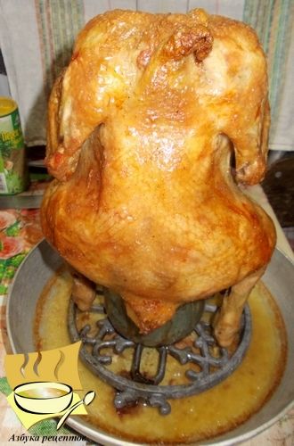 Курицу надеваем на банку и ставим в холодную духовку на 1-1,5 часа.