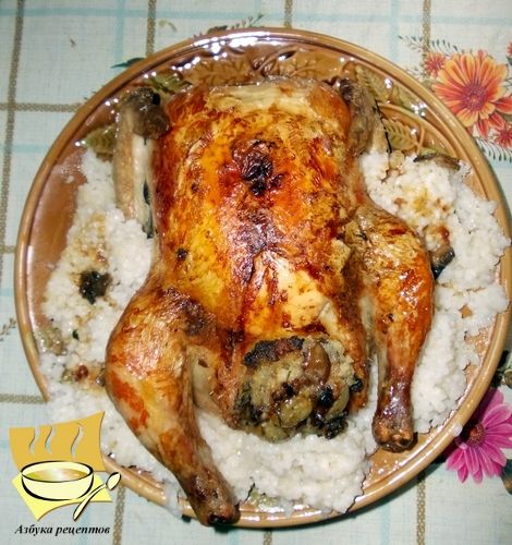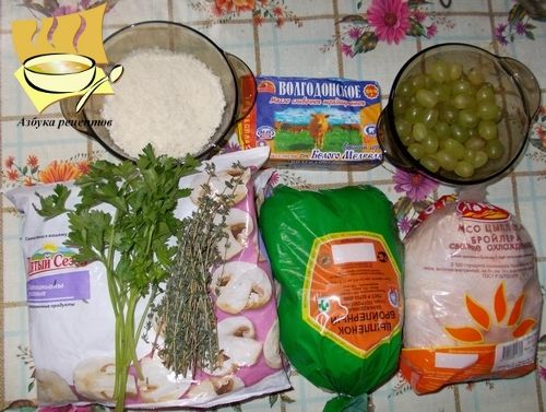 Курица фаршированная грибами и виноградом