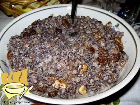 Ингредиенты: очищенная вода – 2 стакана, пшеница – 1 стакан, мед – 4 ст. ложки, орехи (грецкие) – 120 г, сахар – 5 ст. ложек, мак – 1 стакан, сухофрукты (сливы, яблоки, абрикосы, груши) – 170 г, изюм (без косточек) – 80 г.