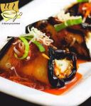 Обезжиренный творог - 300 г, желтки яйчные - 2 шт, мука - 200 г, тертая цедра лимона - 4 чайных ложки, 6 кусочков коричневого сахара, нектарин - 3 шт, сливочное масло 50 г, сахар - 2 ст. ложки, соль. Для соуса: лимон - 1 шт, щепотка кардамона, мед - 150 мл, имбирный сироп - 30 мл, корень имбиря - 3 кусочка длиной 3-5 см, чернослив без косточек - 4 шт, курага - 4 шт.